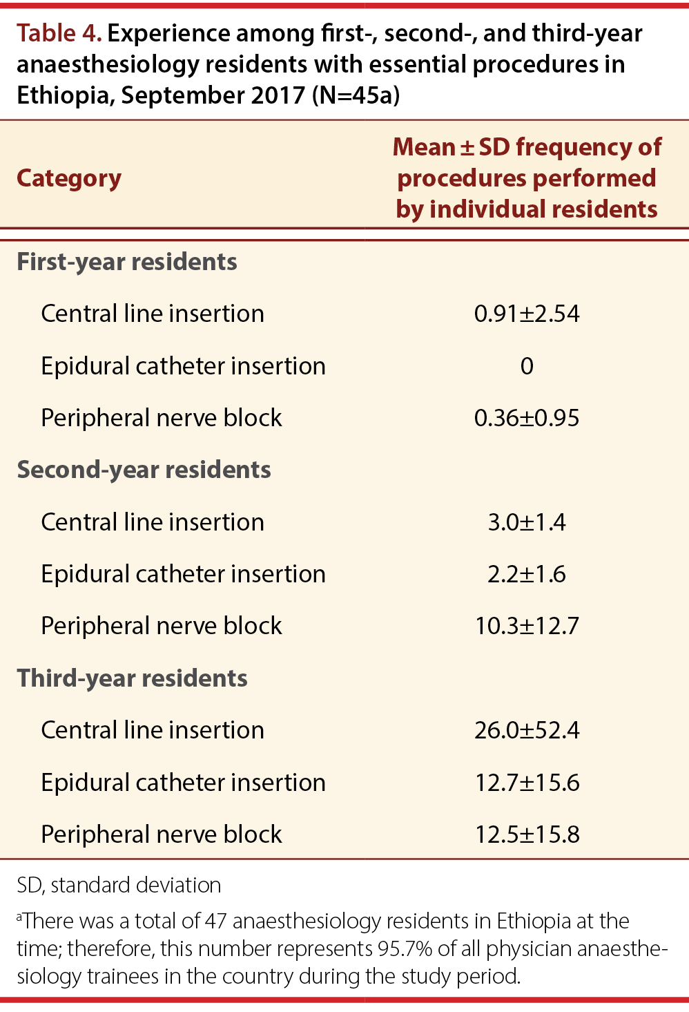 Conclusions: While most anaesthesiology residents in Ethiopia are happy with their specialty, many were dissatisfied with key aspects of their residency training. The results of this survey provide valuable insights into aspects of residency training that could be improved to increase its quality and improve the satisfaction of residents.