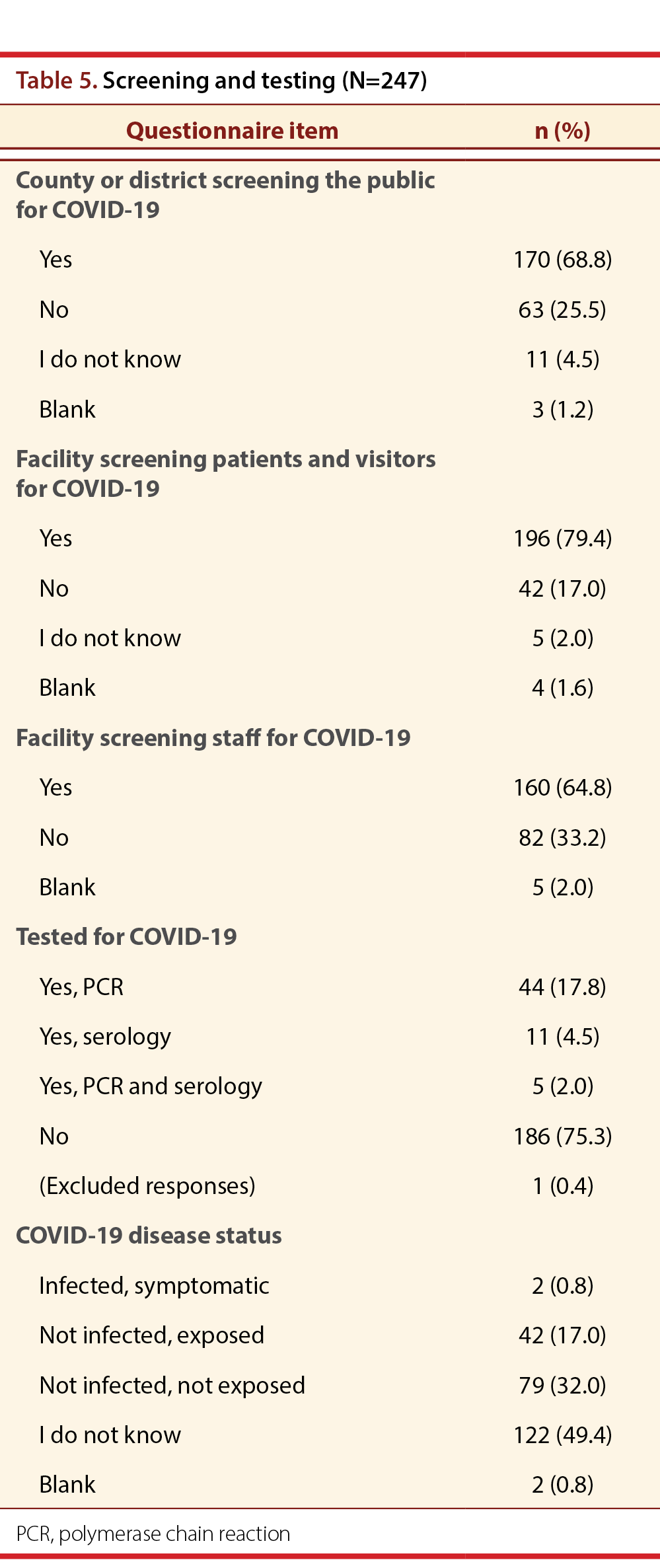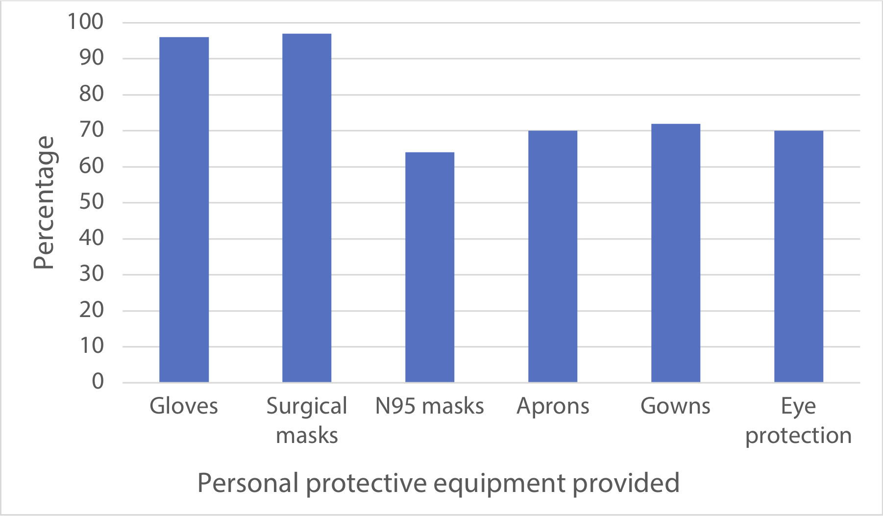Results: Including 78 faculty members (31.6%), 247 participants completed the survey, and 175 believed they had been supplied with sufficient information regarding COVID-19 and the relevant PPE (71.7% of 244 who responded to this questionnaire item). The PPE components that were reported as most available were face masks (n=239, 96.8%), gloves (n=236, 95.5%), and body gowns (n=178, 72.1%). Most of the respondents (n=212, 85.8%) had learning reorganized at their centres due to the pandemic. Forty-two participants (17.0%) reported being exposed to COVID-19. Two respondents (0.8%) reported testing positive for COVID-19, but both were asymptomatic. About half of the respondents (n=122, 49.4%) used the existing COSECSA e-learning platform in the same manner as before the pandemic, and 174 participants (70.4%) suggested that COSECSA should implement a different examination format given the circumstances.